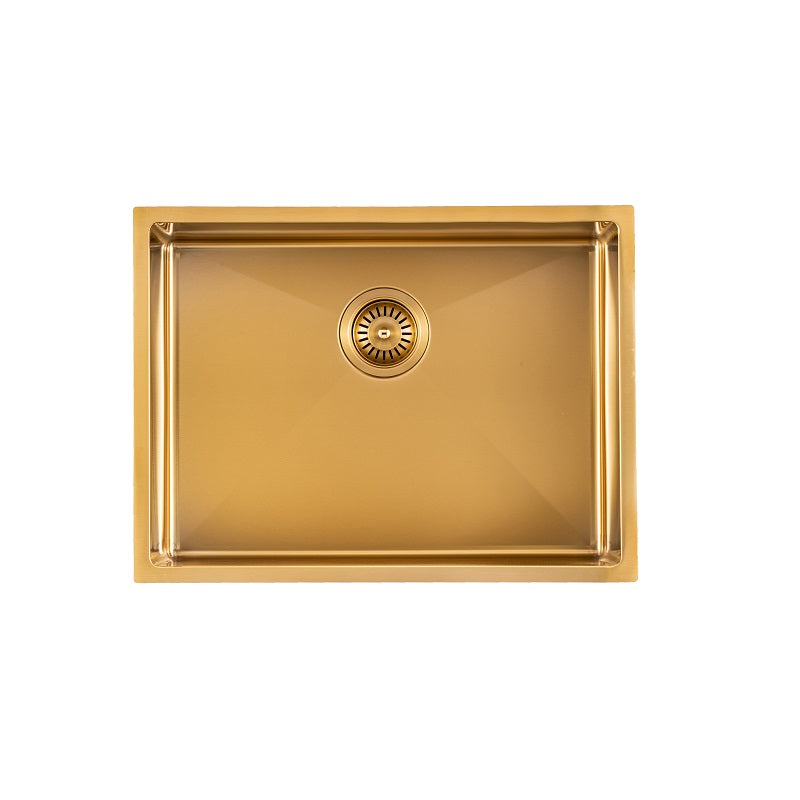 View full detailsBrushed Gold Kitchen/Laundry Sink Australian Standard Certified External: 600 x 450 x 230mm Bowl: 560 x 410 x 225mmmm Total Capacity: 53 Litres...