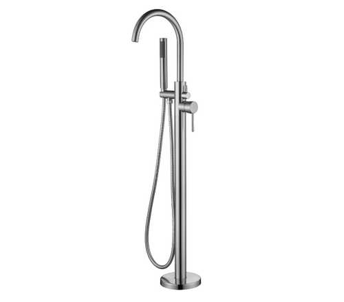 Brushed Nickel Round Freestanding Multifunction Bath Spout Brushed Nickel Material: Brass Single function hand shower WELS: 3 STAR, 8.5L/min WELS...