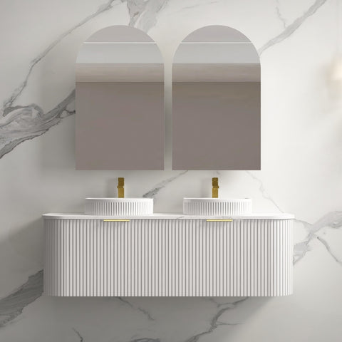 Rio 1500 Curved Fluted Matte White Wall Hung Vanity