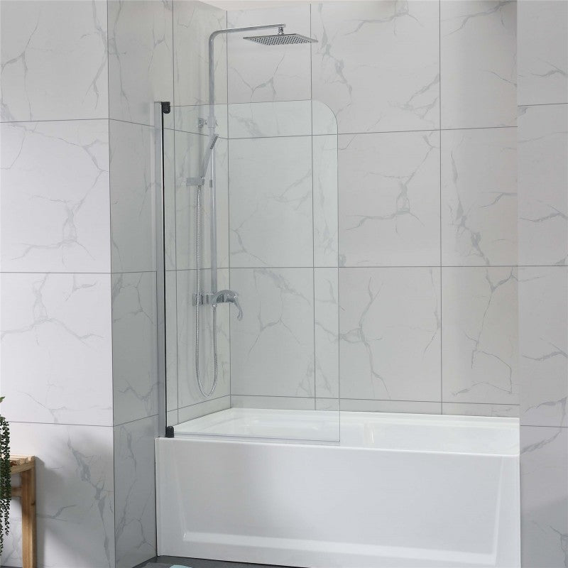 Semi Frameless Pivot Over Bath Screen – Key Features: 6mm toughened safety glass for maximum protection and durability Height: 1500mm 180° sw...
