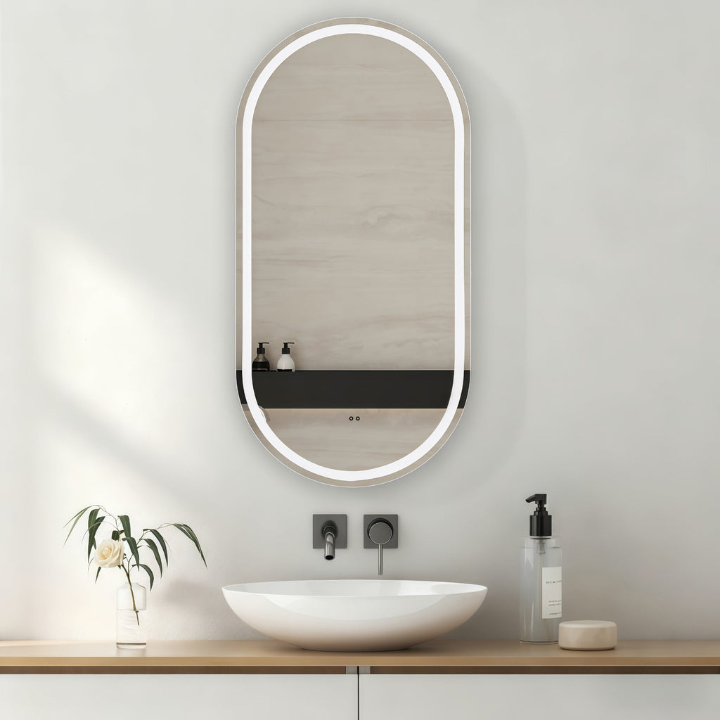 Pill Touchless LED Matte White Oval Pill Shaving Cabinet - 450 x 900mm A sleek, modern shaving cabinet with customisable LED lighting, touch-less o...