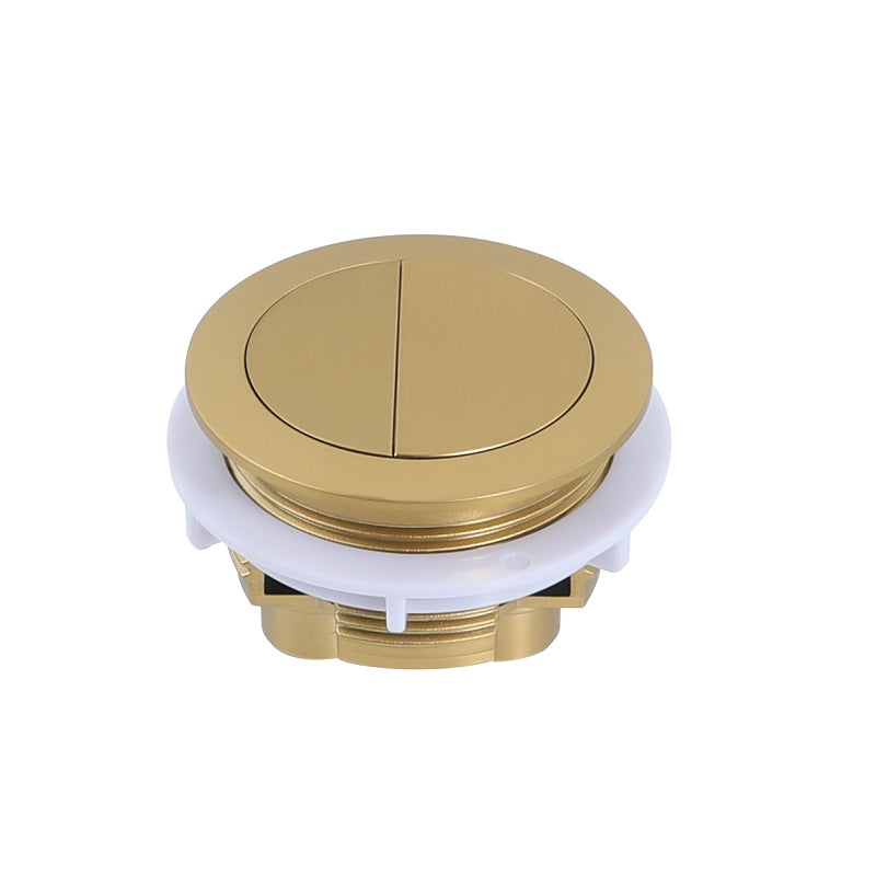 Round Brushed Gold Flush Buttons Brushed Gold Electroplated ABS(Acrylonitrile Butadiene Styrene) Outer Diameter of Button: 56mm Install Hole Diame...