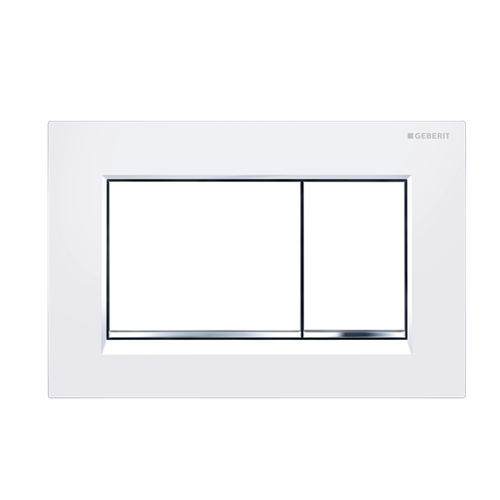 View full detailsGeberit Sigma 30 Button - Square Matte White with Chrome Trim Designed in Switzerland; made in Europe Fingerprint-resistant on matt finishes Smal...
