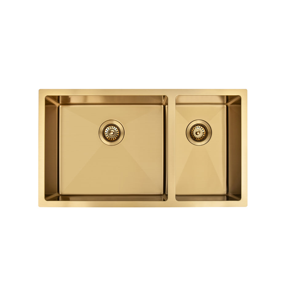 Brushed Gold 850 x 450 x 230mm Double Bowl Kitchen Sink