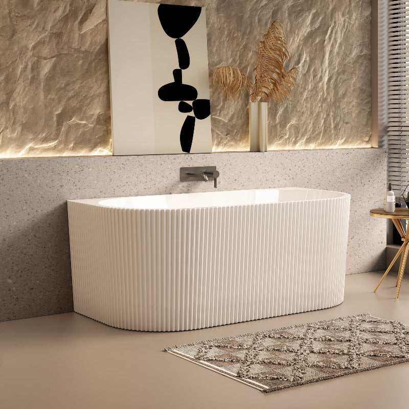 Ronda Fluted Gloss White Designer Back to Wall Round Freestanding Bath Australian Standard 1500 x 750 x 580mm Installation: Back to Wall Vertical ...