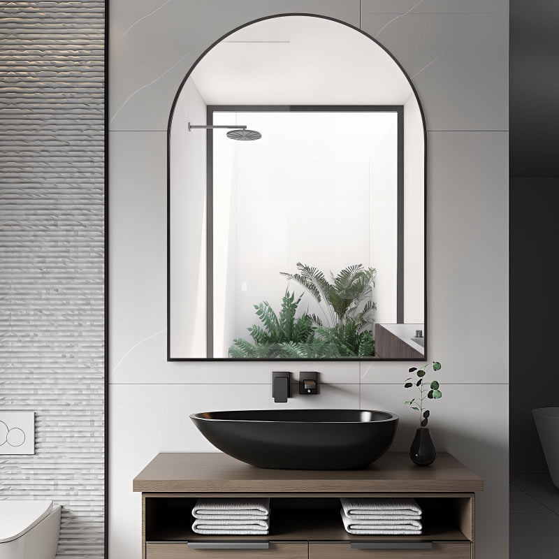 Arched Matte Black Framed Mirror Matte Black Framed Size: 750 x 1000 x 28mm 5mm Copper-Free Mirror Includes Wall Mounted Brackets & Fittin...