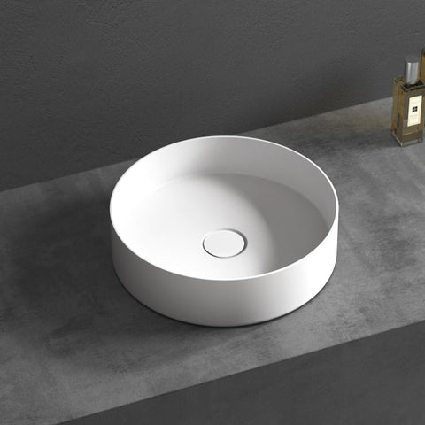 Circa 360mm Matte White Solid Surface Stone Round Above Counter Basin