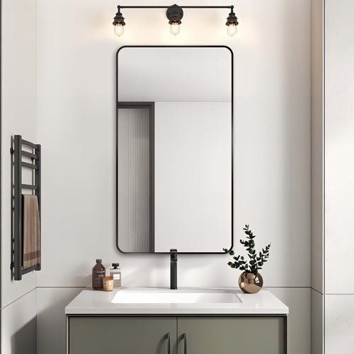Curva Square 500 x 900 Framed Mirror Matte Black Framed Size: 500 x 900x 28mm 5mm Copper-Free Mirror Soft Square Rectangle Design Can be Inst...