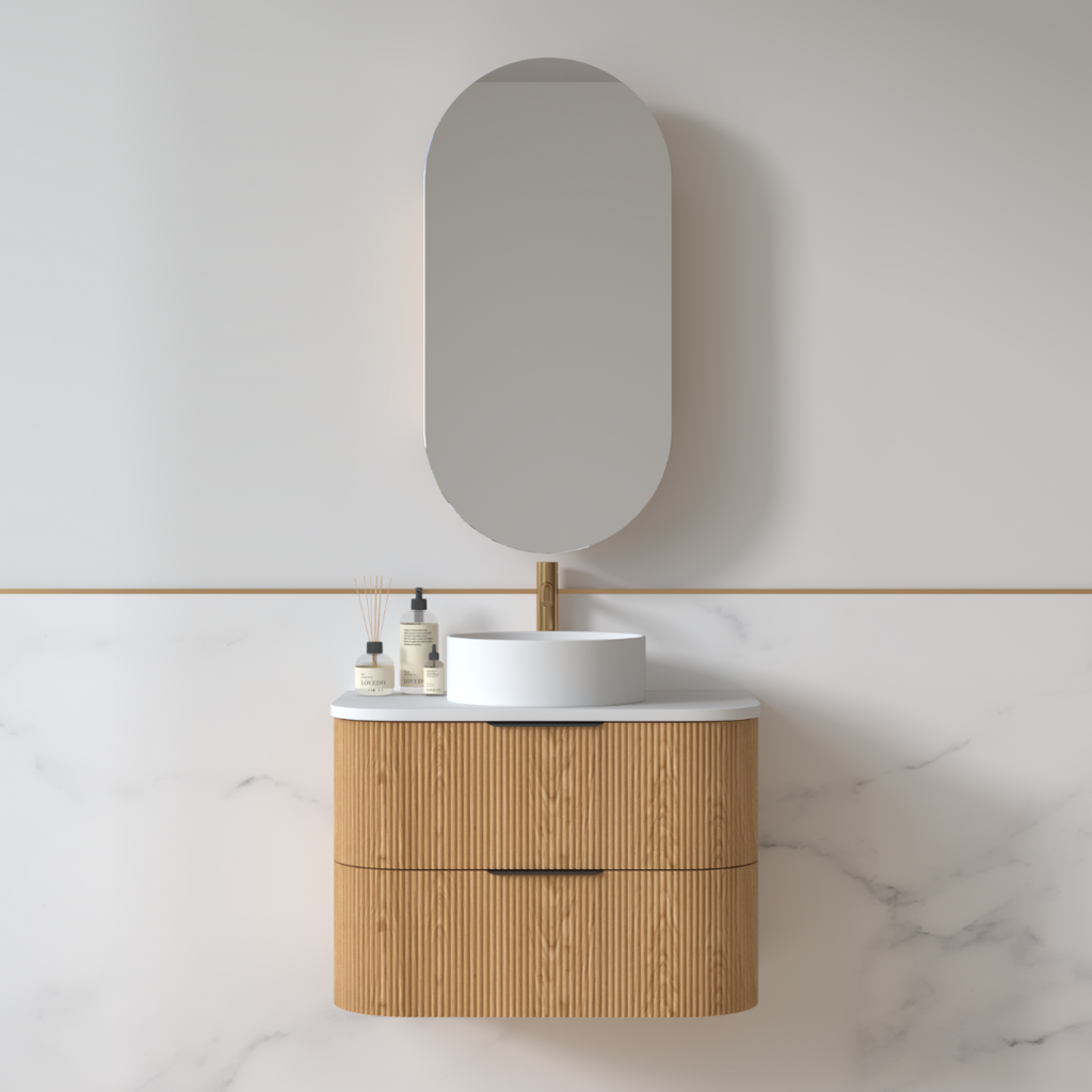 View full detailsLunara 750 Curved Light Walnut Fluted Wall Hung Vanity