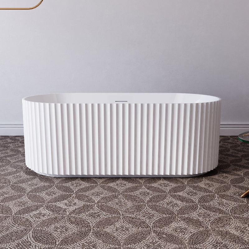Rivata Fluted Matte White Designer Round Freestanding Bath Australian Standard 1500 x 750 x 580mm Vertical Engraved V Groove Linear Lines Modern ...