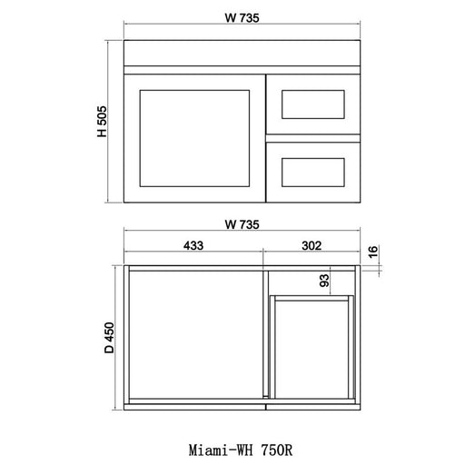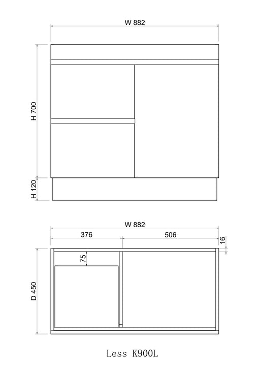 Miami Matte White Vanity with Kickboard – 900mm Dimensions: 900mm (W) x 460mm (D) x 820mm (H) Finish: Matte White Drawers: Available in Left ...