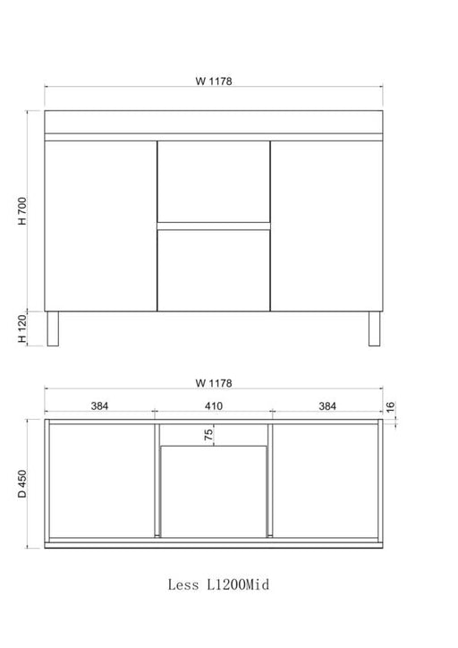 Noah 1200mm Vanity on Legs Configuration: Option for drawers on left or right-hand side Drawer System: Soft-close drawers and doors Finish: T...