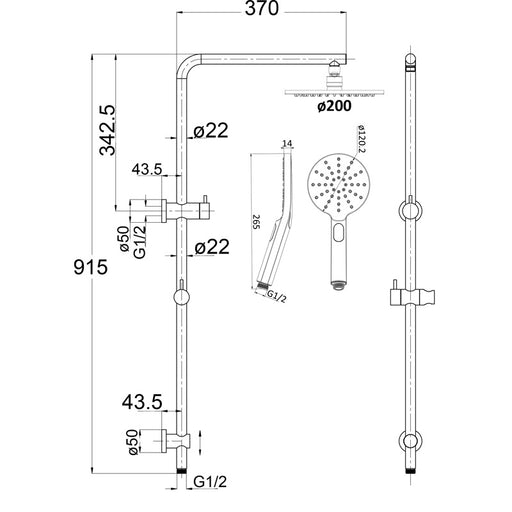 Ikon Sando Mini Multifunction Shower Rail Australian standard Built in diverter design 3 function hand held shower head 250mm square shower head...