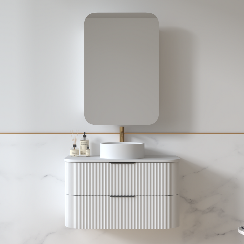 View full detailsLunara 900 Curved Matte White Fluted Wall Hung Vanity