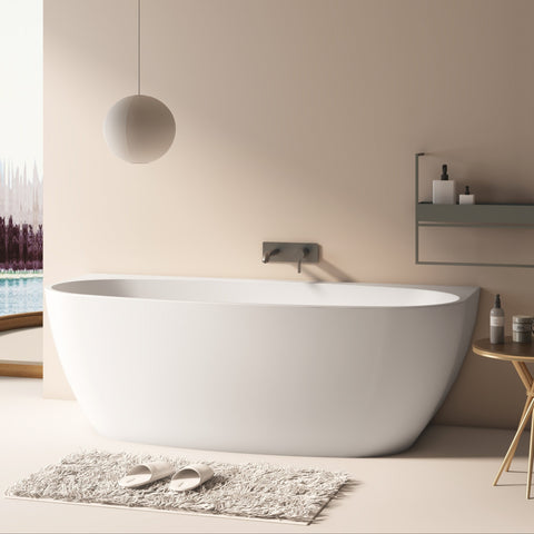 Delta 1700mm Matte White Back to Wall Oval Freestanding Bath Tub