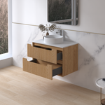 Fiora 750mm Light Walnut Fluted Wall Hung Vanity