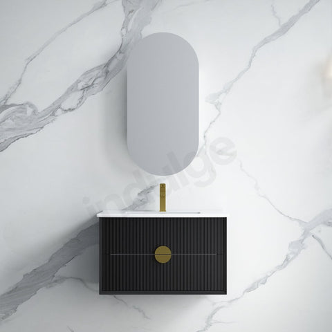Kingo 750 Matte Black Fluted Wall Hung Vanity