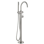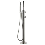 Mica Fluted Brushed Nickel Freestanding Bath Mixer with Hand Shower