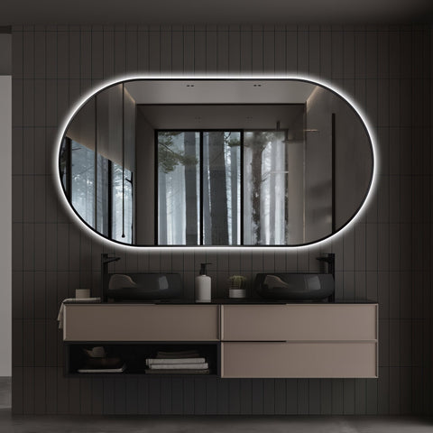 Oval Pill Touchless 1500 x 800 Matte Black LED Mirror - Three Light Temperatures
