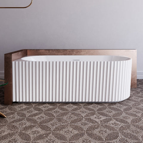 Rivata Fluted 1500mm Matte White Left Corner Fit Designer Round Freestanding Bath