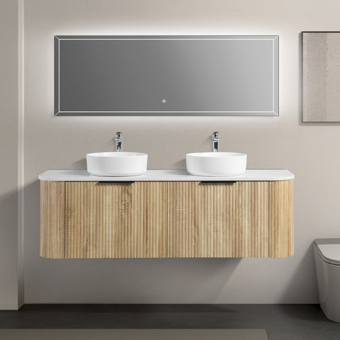 Ronda 1500 Curved Double White Oak Fluted Wall Hung Vanity