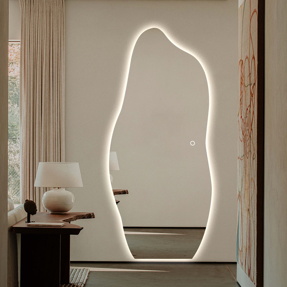 Liora Asymmetrical Oval LED Mirror - Three Light Temperatures By Indulge Size: 800 x 1800 x 25mm Touch Sensor Switch On/Off Three Colour Dimmab...