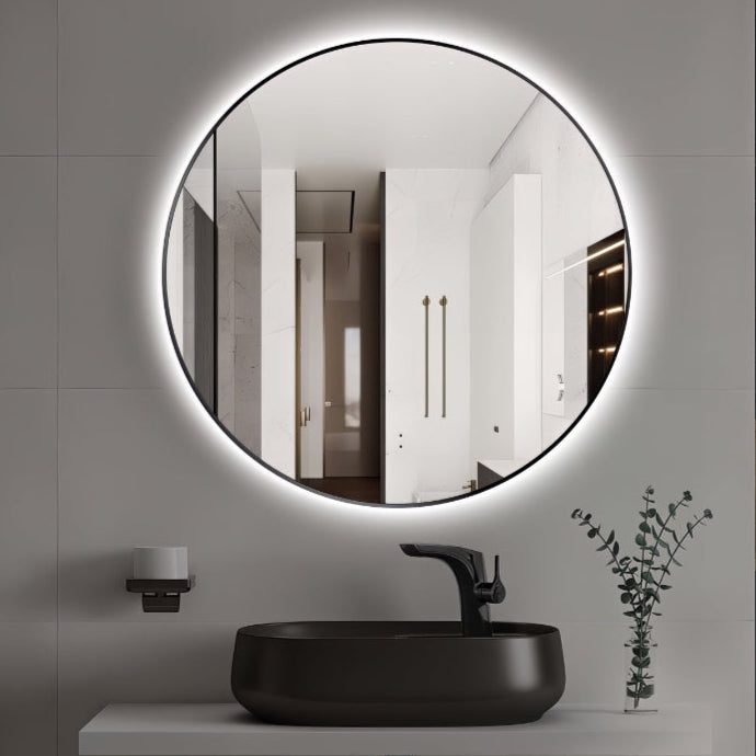 Round Touchless Back-Lit Matte Black 800mm LED Mirror - Three Light Temperatures