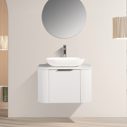 Fiora 600mm Matte White Fluted Wall Hung Vanity Warm, elegant, and space-efficient, the Fiora 600 Vanity showcases soft fluted curves in a Matte Wh...