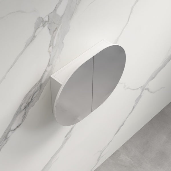 Rosy Matte White Oval Shaving Cabinet 750 x 600 x 130mm Matte White Finish Soft Closing Cabinet Doors High Moisture Resistant Plywood Installati...