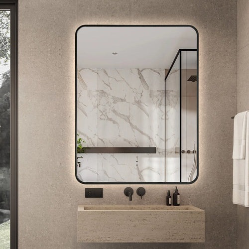 Curva Soft Square Touchless LED Mirror - Three Light Temperatures Size: 600 x 800 x 25mm Matte Black Framed Back-Lit Touch-Less Sensor Switch ...