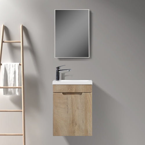 Indulge Kelsa 400 Fluted White Oak Wall Hung Vanity 400 x 220 x 615mm Modern Designer Detailing White Oak Fluted Paneling PVC Film Cabinet, MDF B...