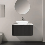 Ronda 600 Curved Matte Black Fluted Wall Hung Vanity