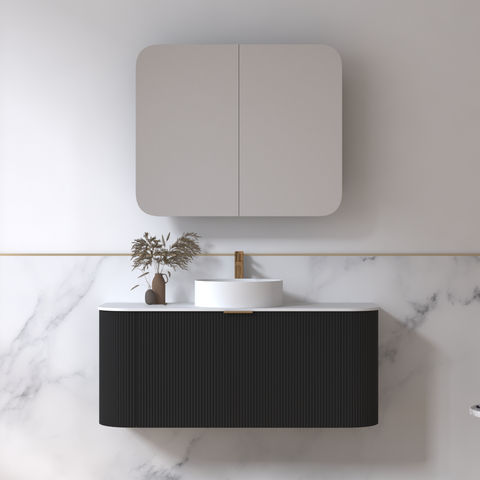 Siena 1200 Curved Fluted Matte Black Wall Hung Vanity