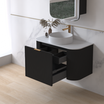 Siena 900 Curved Matte Black Fluted Wall Hung Vanity