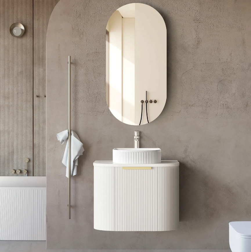 View full detailsSiena 600 Curved Matte White Fluted Wall Hung Vanity
