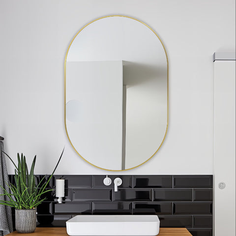 Oval Brushed Gold 600 x 900 Framed Mirror
