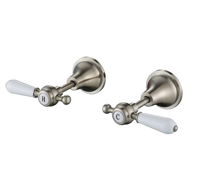 Bordeaux Traditional Wall Tap Set Stunning modern vintage/provincial style PVD brushed nickel finish Designed for showers/baths White ceramic ha...