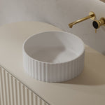 Flora 380mm Matte White Fluted Solid Surface Stone Round Above Counter Basin