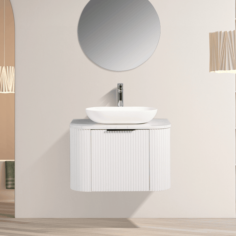 Ronda 600 Curved Matte White Fluted Wall Hung Vanity