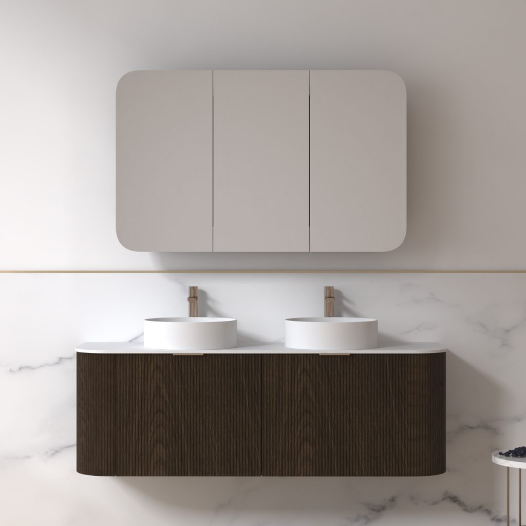 View full detailsSiena 1500 Curved Double Fluted Black Walnut Wall Hung Vanity