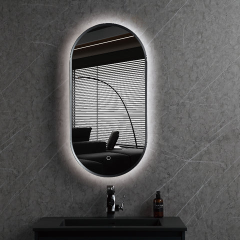 Oval 450 x 900mm Gun Metal LED Mirror - Three Light Temperatures