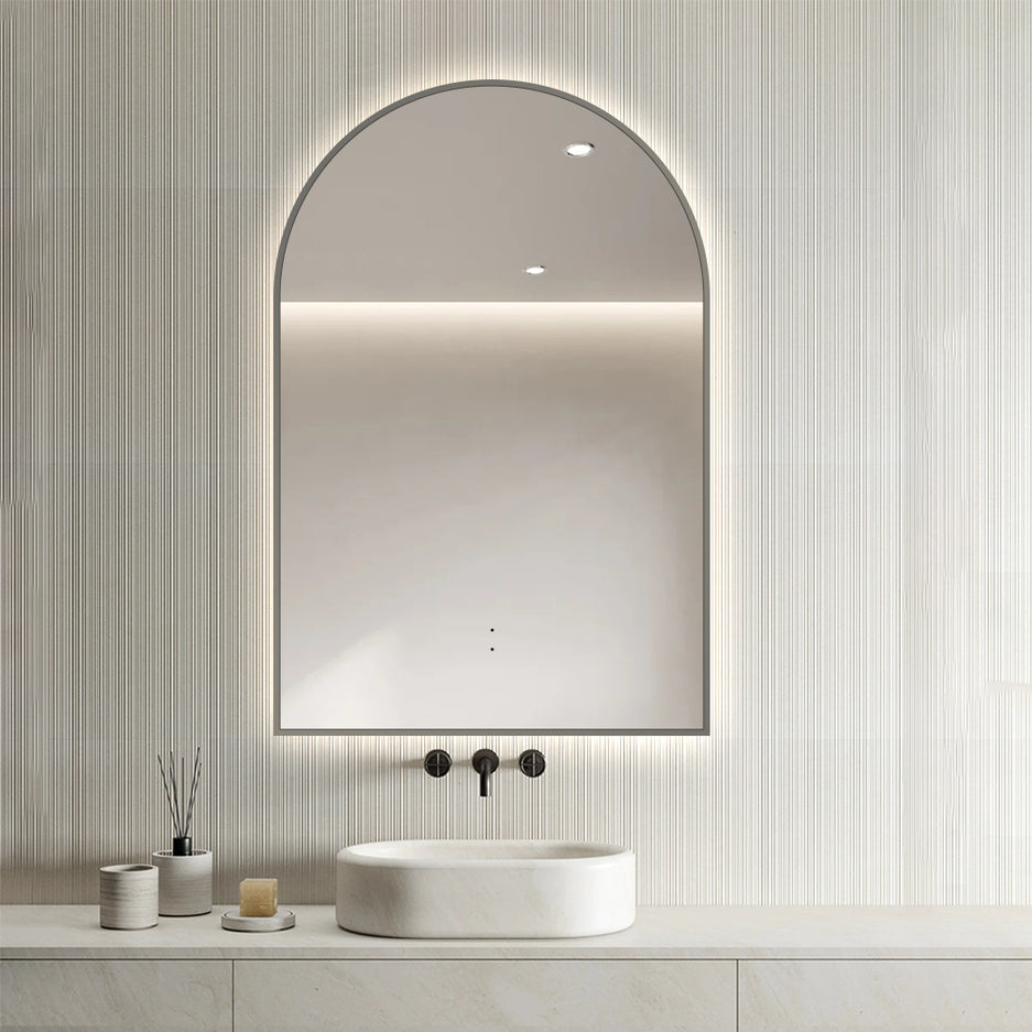View full detailsArched Touchless Back-Lit Gun Metal LED Mirror - Three Light Temperatures