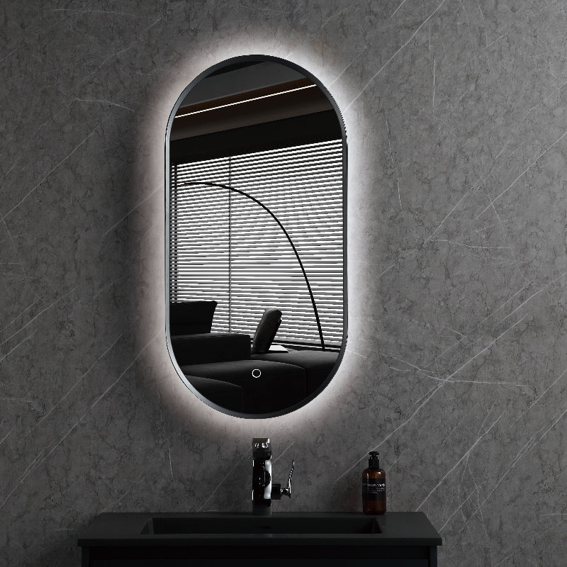 Oval Back Lit Gun Metal Framed LED Mirror - Three Light Temperatures Size: 450 x 900 x 32mm Touch Button Switch on/off on Mirror Three Colour Di...