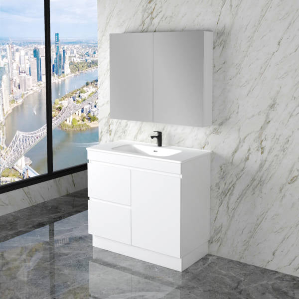Miami Matte White Vanity with Kickboard – 900mm Dimensions: 900mm (W) x 460mm (D) x 820mm (H) Finish: Matte White Drawers: Available in Left ...