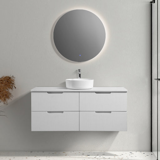 Vienna Matte White Fluted 450mm Wall Hung Vanity 450 x 250 x 550mm Fluted matte white paneling MDF water resistant cabinet, with PVC film Gloss w...