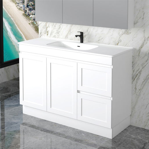 Miami 600 Matte White Vanity With Kickboard 600 x 460 x 820mm Matte White Cabinet Shaker Style MDF Cabinet Eden Vitreous Ceramic Basin One Ta...