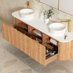 Bondi 1800 Curved Double Woodland Oak Fluted Wall Hung Vanity