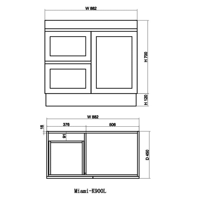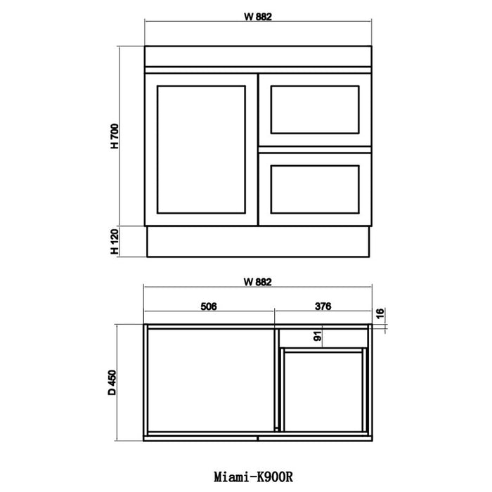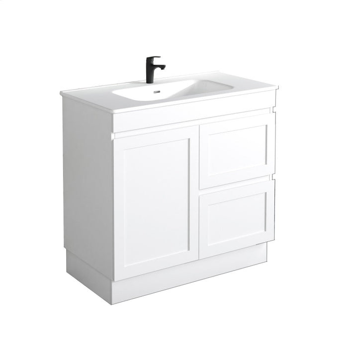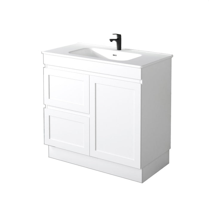Miami 900 Matte White Vanity With Kickboard - Right Hand Drawers
