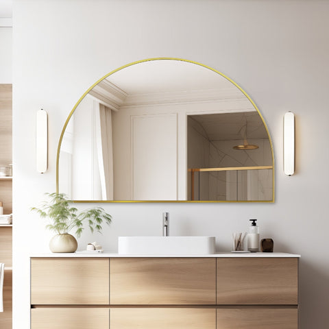 Arched Brushed Gold Framed Mirror Brushed Gold Framed Size: 1500 x 1000 x 28mm 5mm Copper-Free Mirror Includes Wall Mounted Brackets & Fit...