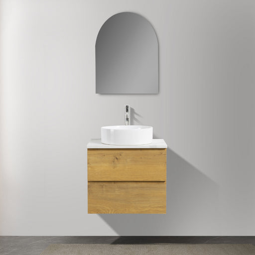 Otti Bondi 600 Curved Woodland Oak Wall Hung Vanity 600 x 460 x 450mm Mounting: Wall Hung Stone Thickness: 20mm Colour: Natural Woodland Oak Int...
